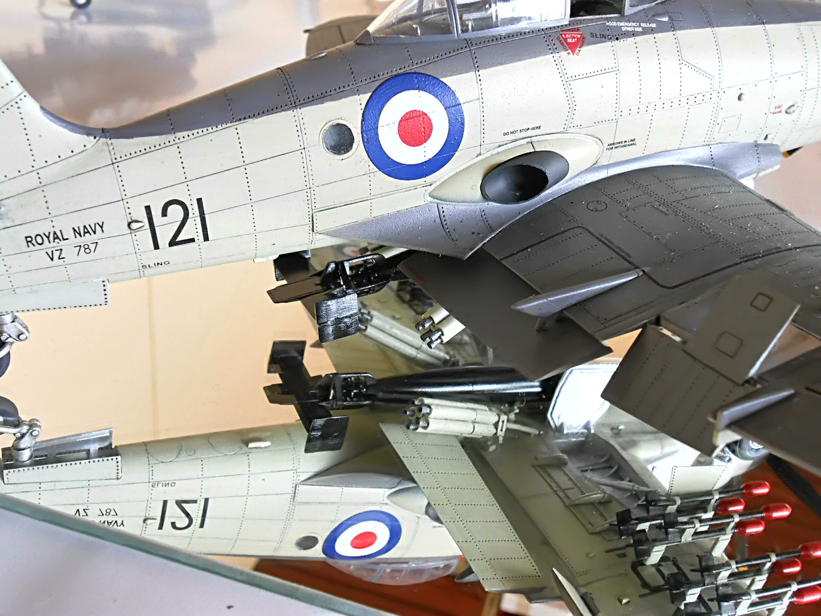 Cette vue d'un Wyvern non identifié, montre les mécanismes de pliage des ailes utilisé par ce type d'avion, ainsi que la position des roquettes et le système de train d'atterrissage.
